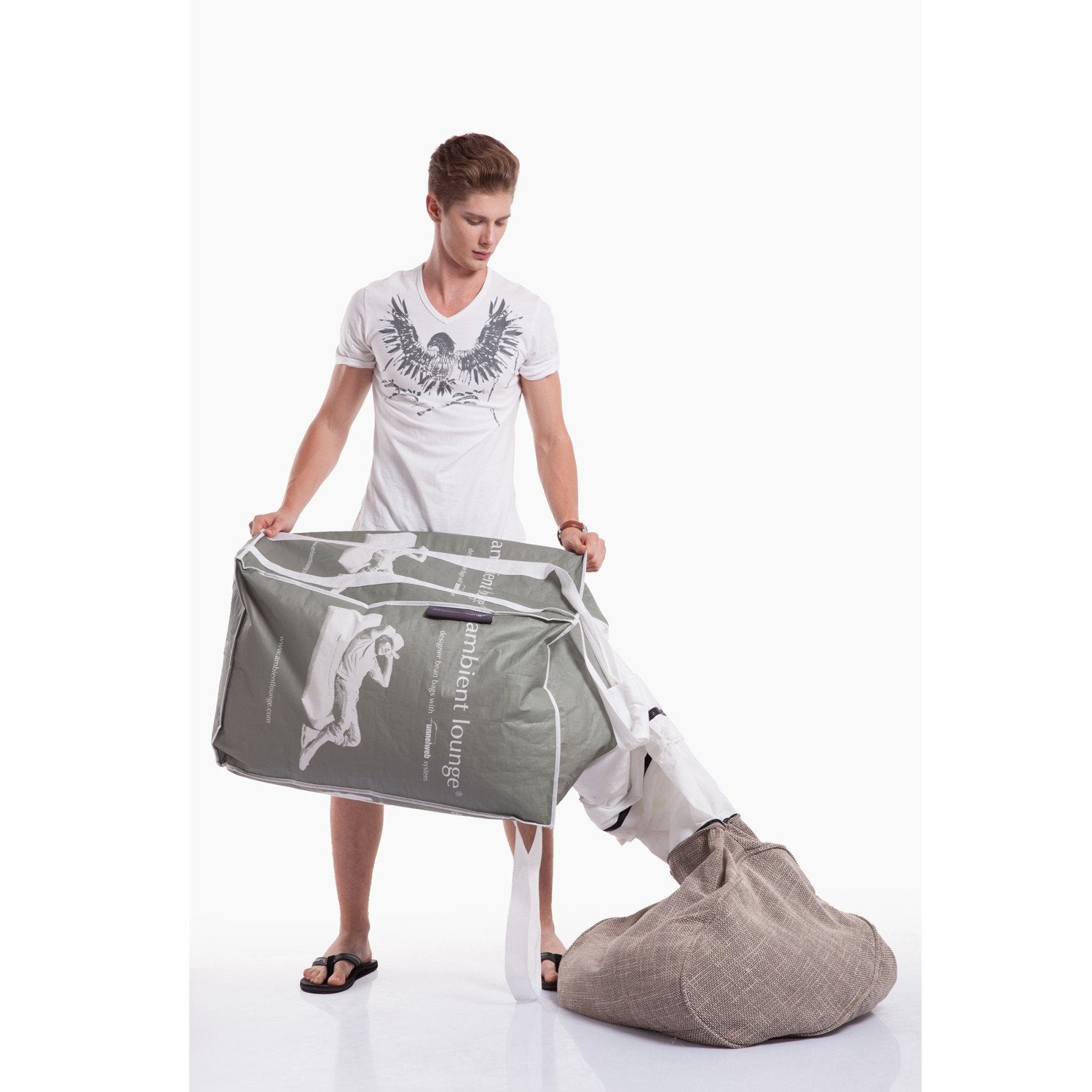 No longer will you need to be carting massive bags around shopping centers, spilling bean bag beans all over your lovely home, wrestling with plastic bags and getting half the family to help you fill or top up a bean bag. Ambient Lounge bean bag filling comes in the Patented Funnelweb™ Zip & Tip System delivered in an environmentally friendly re-usable transport bag directly to your door. It’s a one-man job that is quick, convenient and easy.