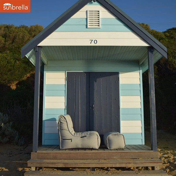 Ambient Lounge® silver class elements™ bean bags are waterproof and UV resistant - and made from very thick, durable 1200D and 1600D high quality nylon fabrics with rubber backing, made to cope with the rain, hail or shine harsh Australian outdoor conditions. Water, beer, white wine and other non-staining liquids run off the surface and can literally be wiped clean. Food, mud and other reasonable scuff stains can be washed clean with soap and water - just like washing a car. Durability, easy cleaning maintenance and style/comfort are reasons why commercial establishments like the Moonlight Cinema and Burswood outdoor cinema use these ambient lounge products with confidence.