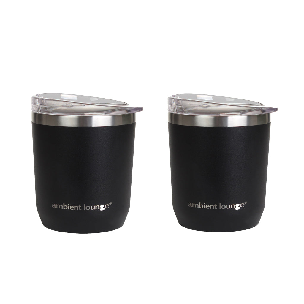 Keep your drinks hot or cold for over 3 hours. Get this eco-friendly insulated cup by ambient lounge® in a stunning and sleek black colour. This features a contemporary embossed icon logo, easy clean surface, and secure drinking lid perfect for sipping on the go, without spillage.