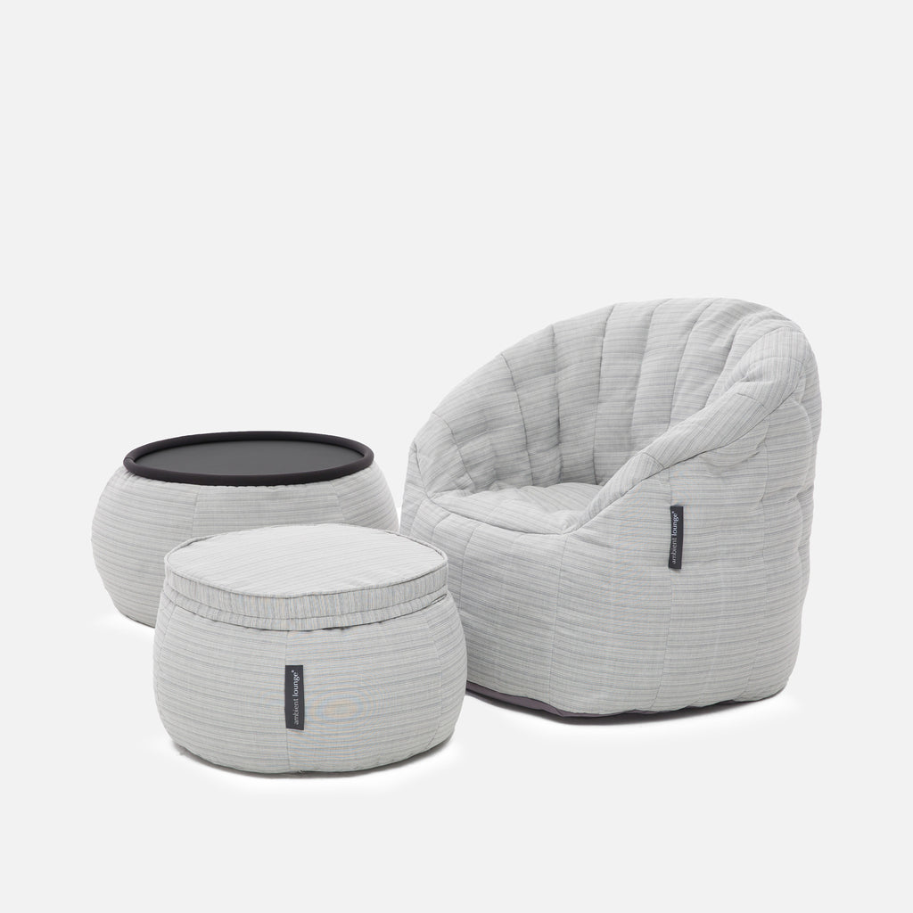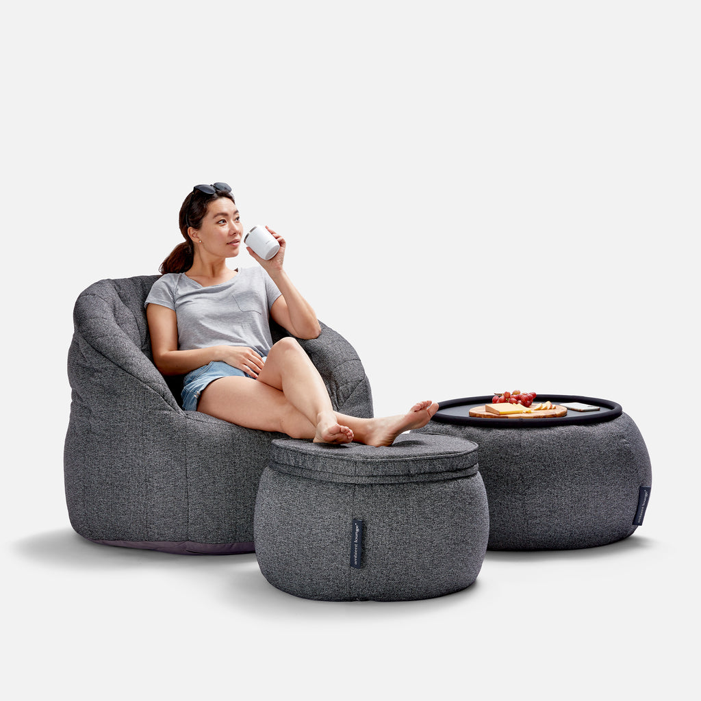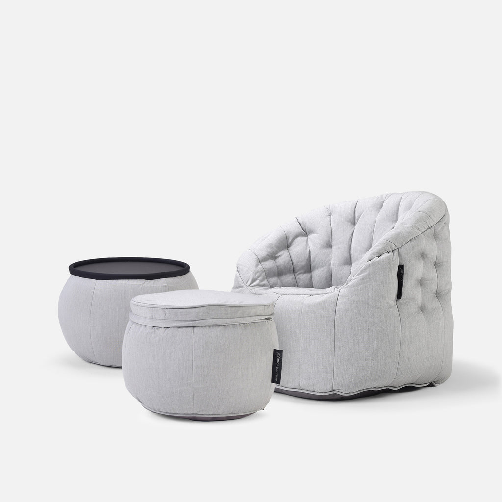 Whether you love epic Home Cinema, reading chill-time, creative spaces or just a place where you can relax and have a few drinks - the Contempo Package has it all. A Butterfly Sofa with its structured quilted support is a cocoon of comfort. Match that with a Wing Ottoman with its removable memory foam cushion for endless lounging options. No set would be complete without the stylish Versa Table with a stable acrylic surface great for placing an arms-distance laptop, drinks or a bowl of noodles for the ultimate 5-star weekend luxury every day of the week.