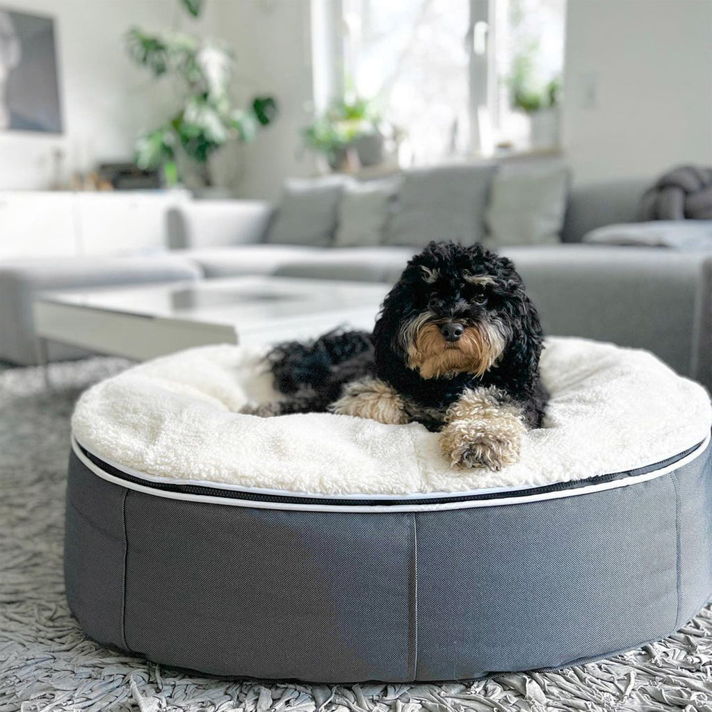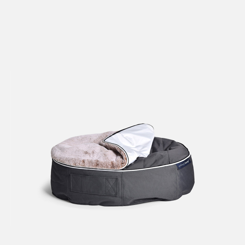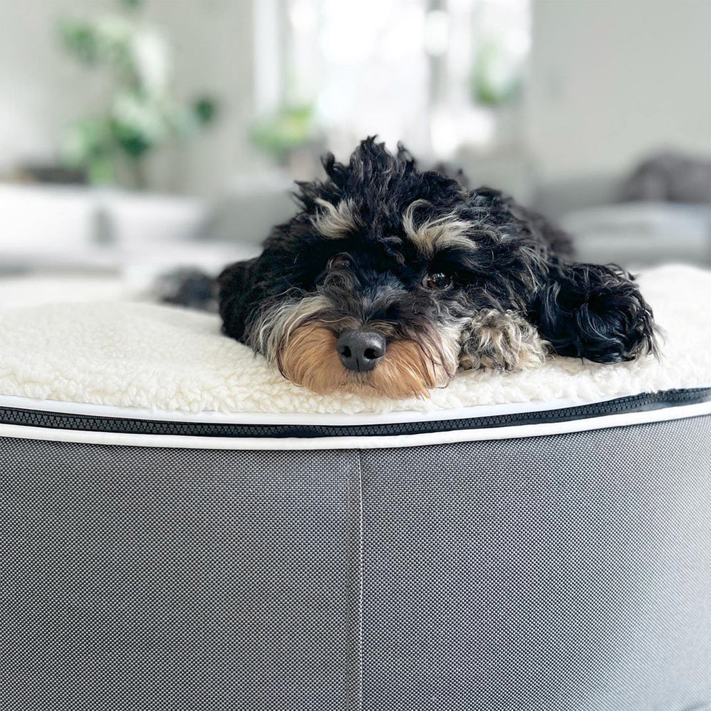 Treat your dog to a Medium Luxury Dog Bed suitable for every season and perfect for both indoor and outdoor use. Featuring a waterproof and chew-resistant base, this dog bed is designed for furparents looking for durability and beauty at the same time when it comes to their dog's bed. Customize this dog bed by switching the top cover between organic cotton, faux fur, or our waterproof ThermoQuilt. Easy-clean, hygienic and multifunctional.