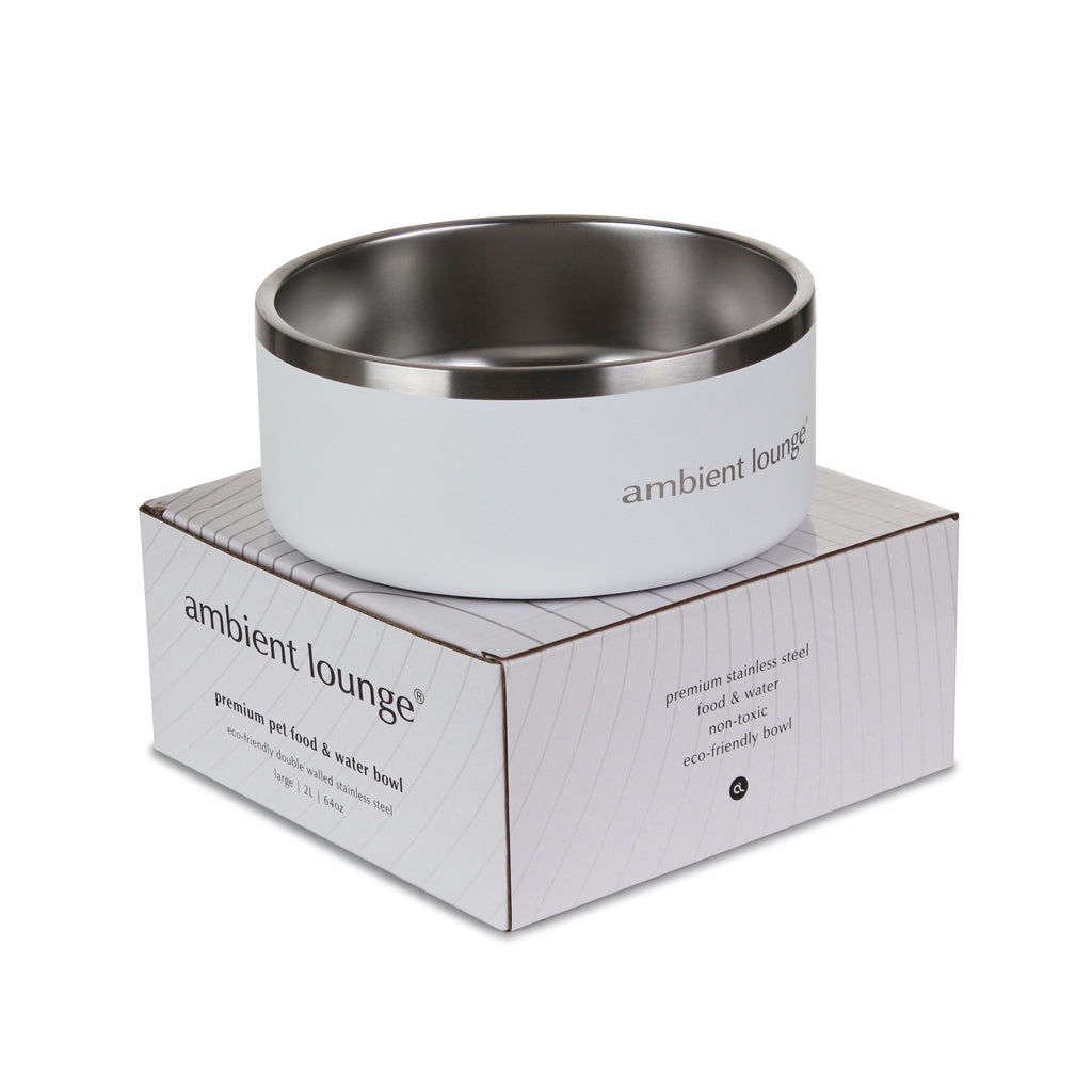 2L Double-Wall Stainless Steel Food & Water Dog Bowl (White)