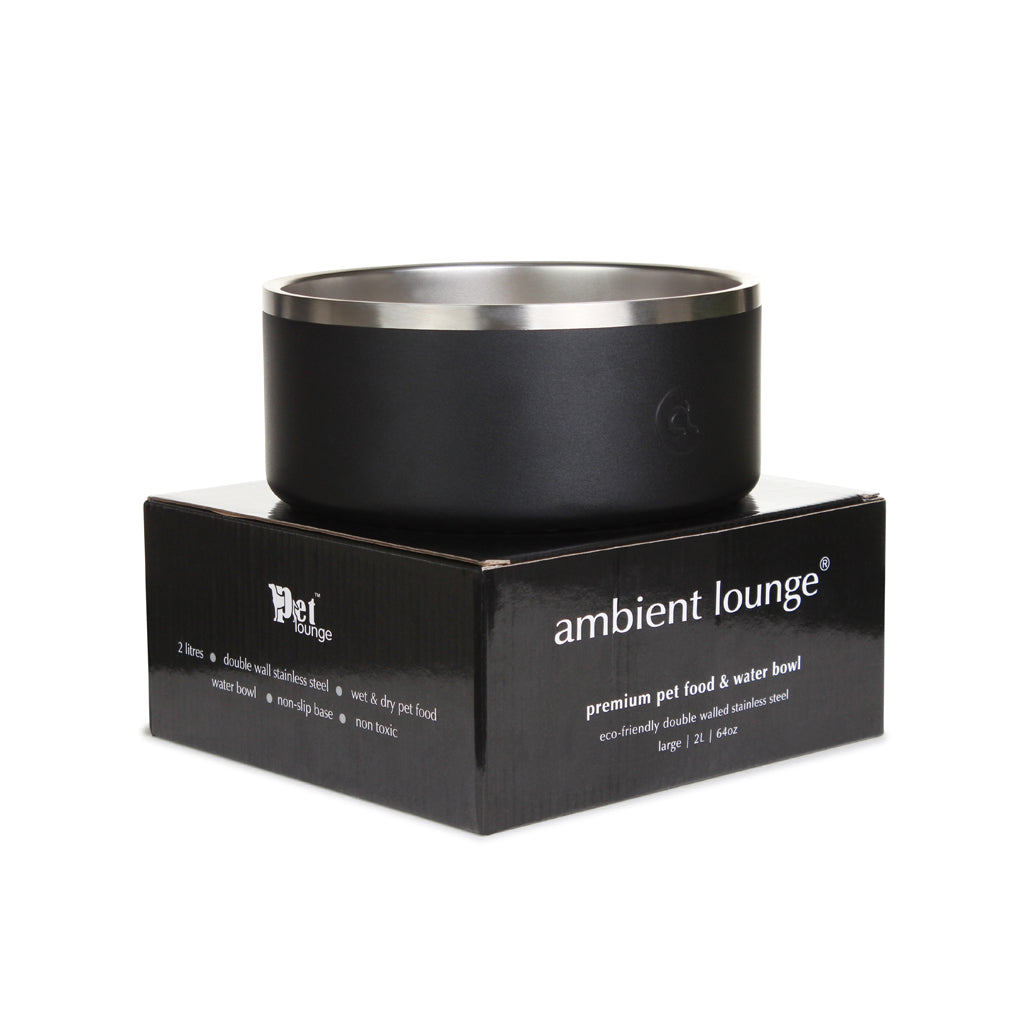 2L Double-Wall Stainless Steel Food & Water Dog Bowl (Black)