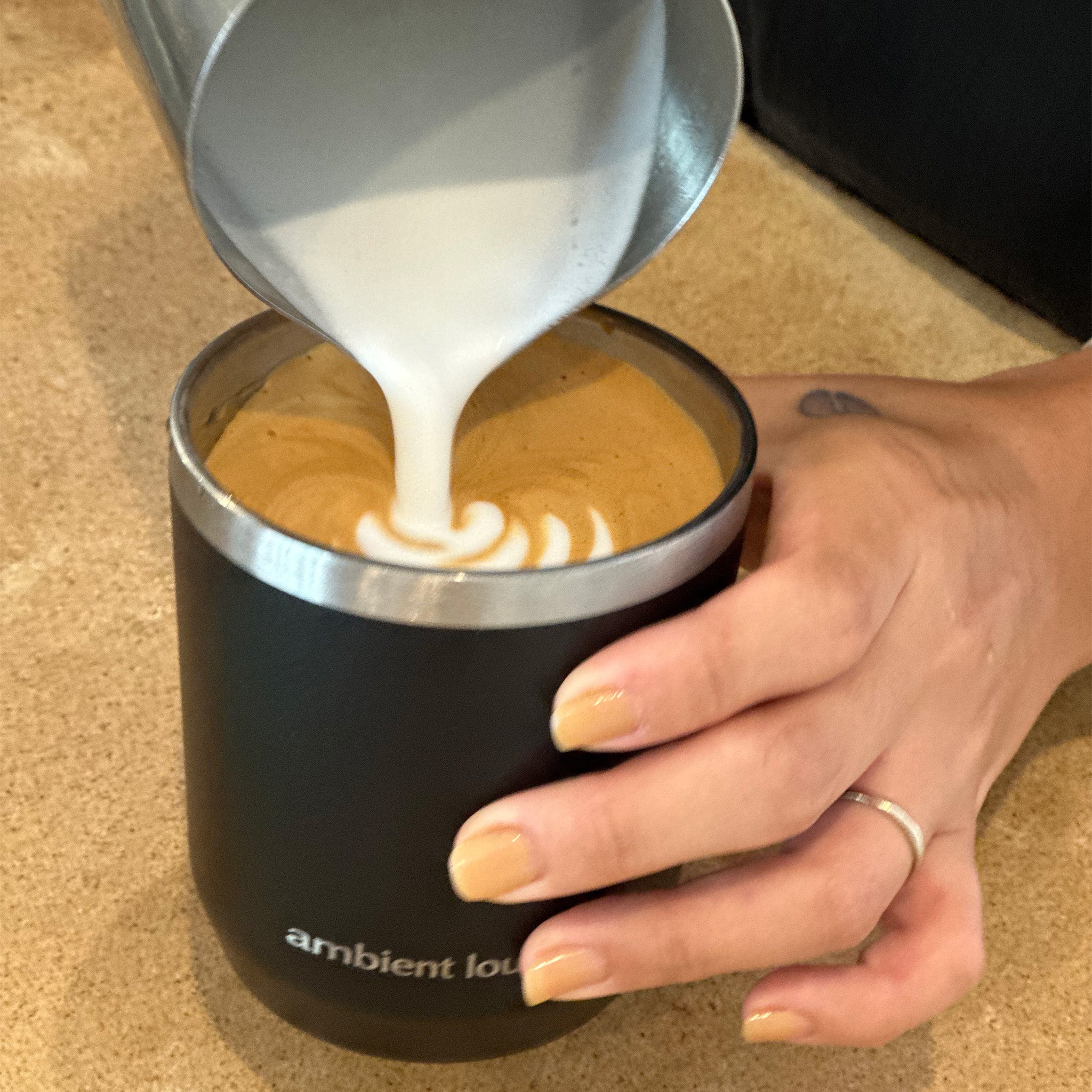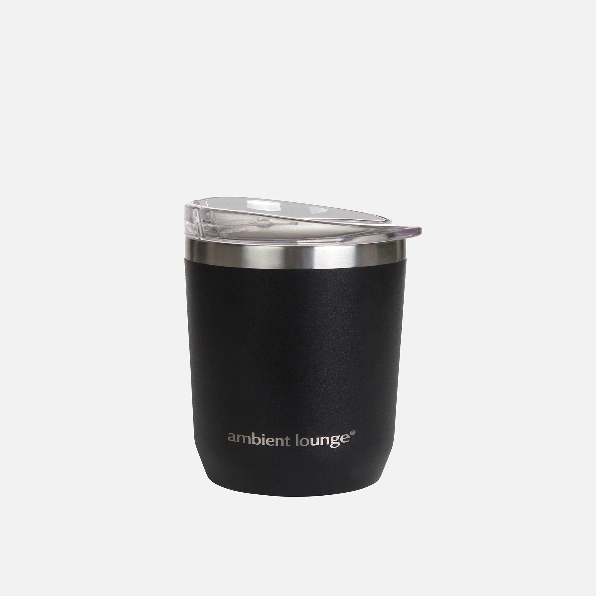 Keep your drinks hot or cold for over 3 hours. Get this eco-friendly insulated cup by ambient lounge® in a stunning and sleek black colour. This features a contemporary embossed icon logo, easy clean surface, and secure drinking lid perfect for sipping on the go, without spillage.
