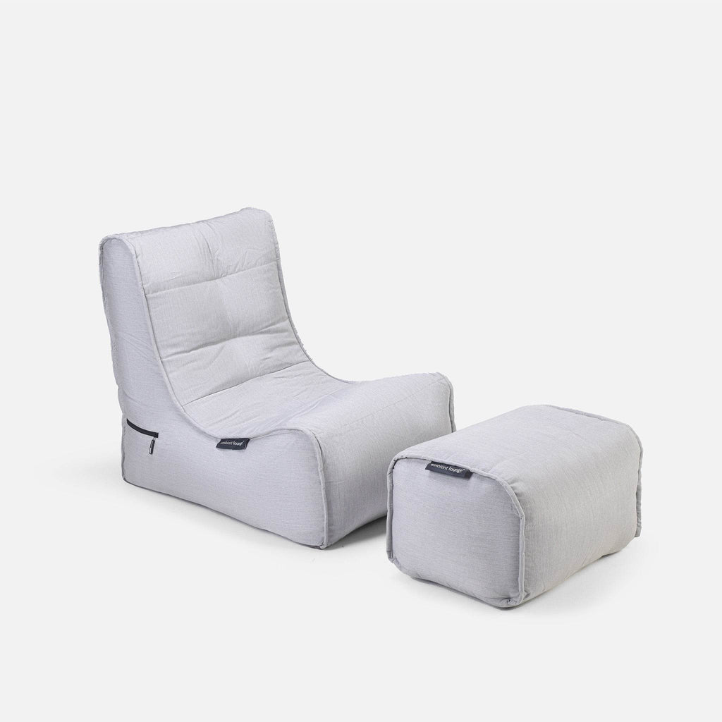 Ambient Lounge® silver class elements™ Sitzsäcke sind wasserfest und UV-resistent. Sie sind aus hochwertigen, dicken und langlebigen 1200D und 1600D Nylonstoffen mit gummierte Rückseite handgefertigt. Designt, um jedem Wetter standzuhalten. Nicht nur Regen, Hagel, Schnee und Hitze sind kein Problem für unsere Outdoor-Stoffe. Auch Flüssigkeiten wie Bier, Wein, Wasser und andere nicht abfärbenden Liquide perlen einfach von der Oberfläche unserer Beanbags ab. Einmal drüber wischen und der Sitzsack ist wie neu. Essenflecken, Dreck, Schlamm und andere Verschleißflecken können ganz einfach mit Wasser und Seife abgewaschen werden. Langlebigkeit, Pflegeleichtigkeit, Style und Komfort sind die Gründe, warum sich viele Outdoor-Kinos, Outdoor-Bars und Eventmanager für unsere Ambient Lounge® Beanbags entscheiden.